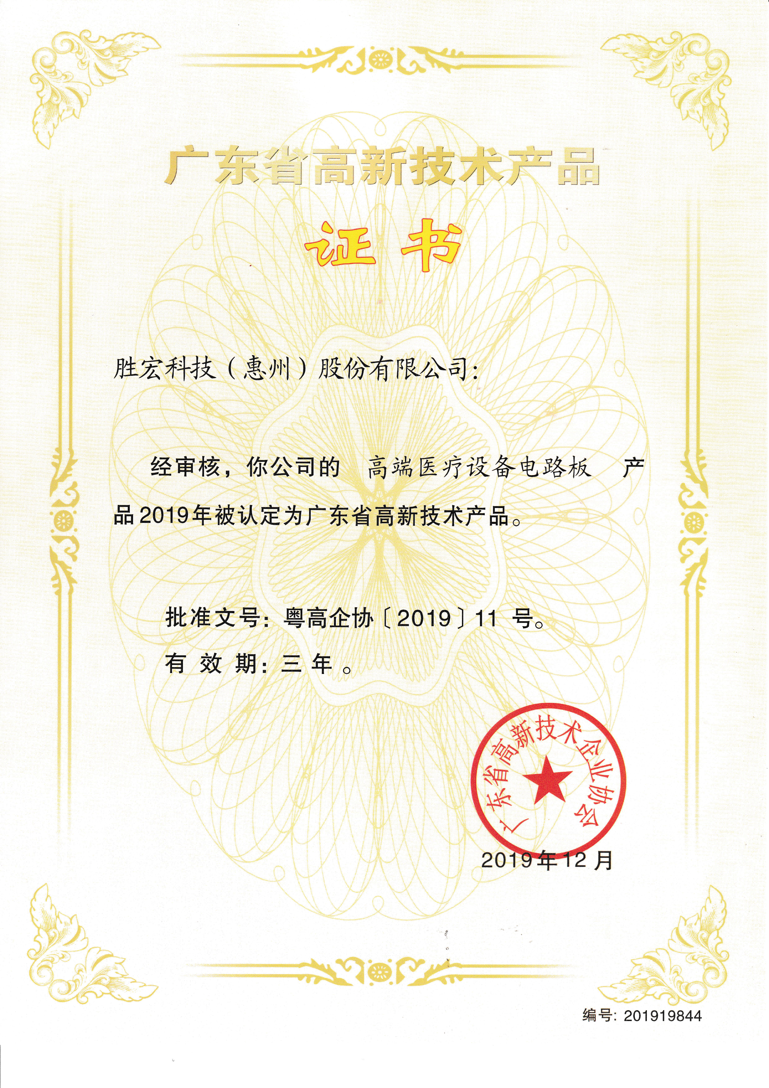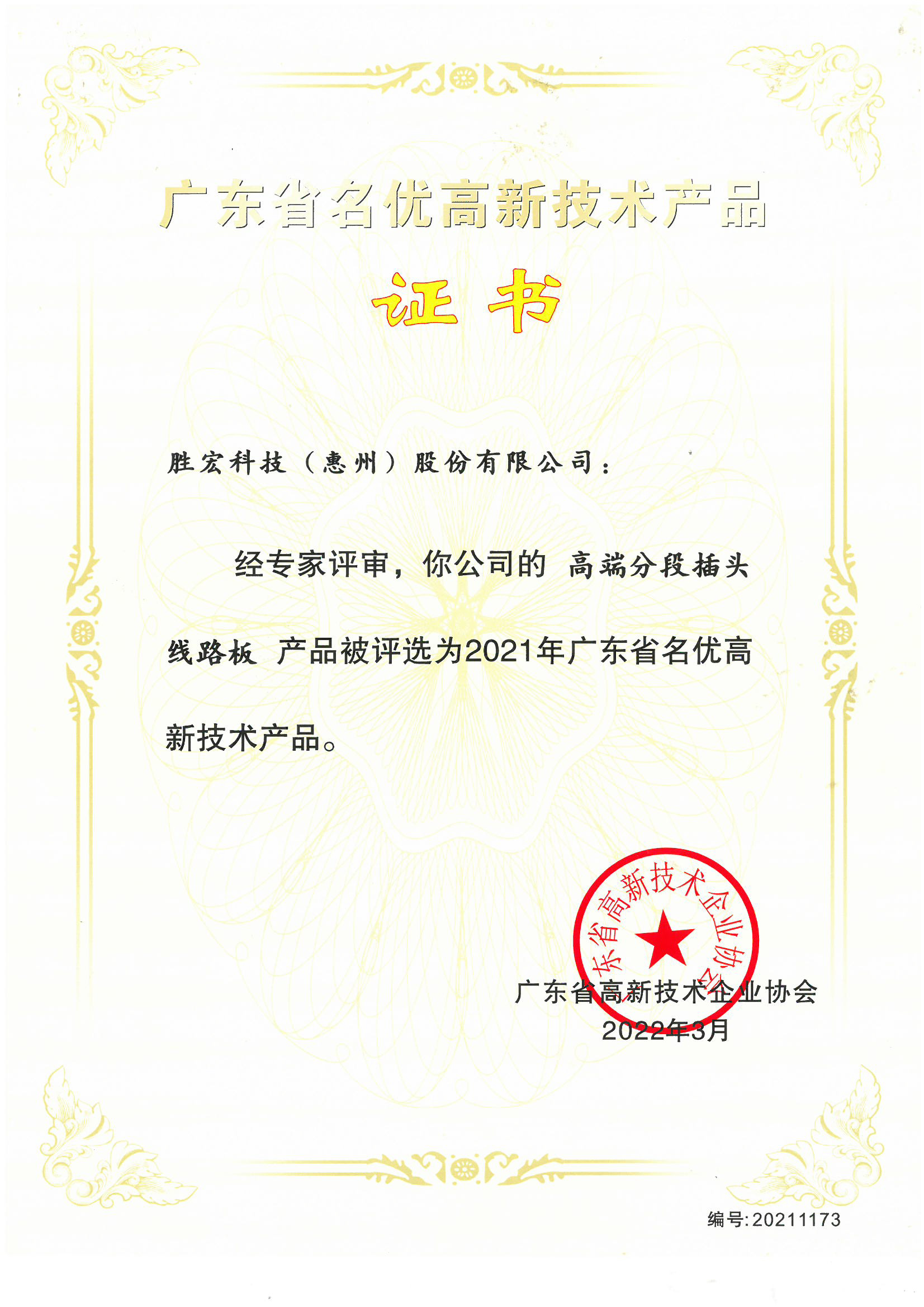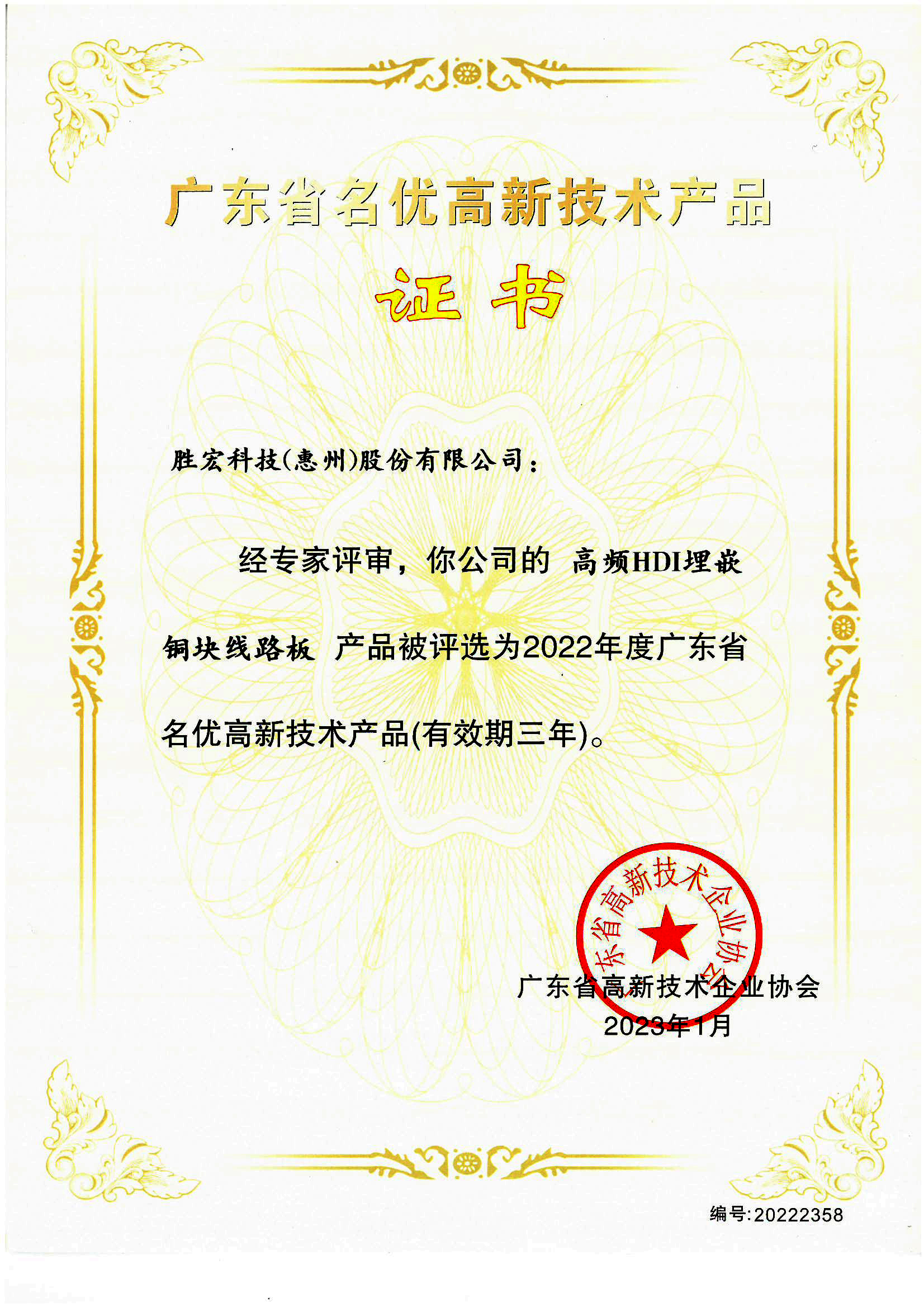 “高频HDI埋嵌铜块电路板”名优高新手艺产品证书