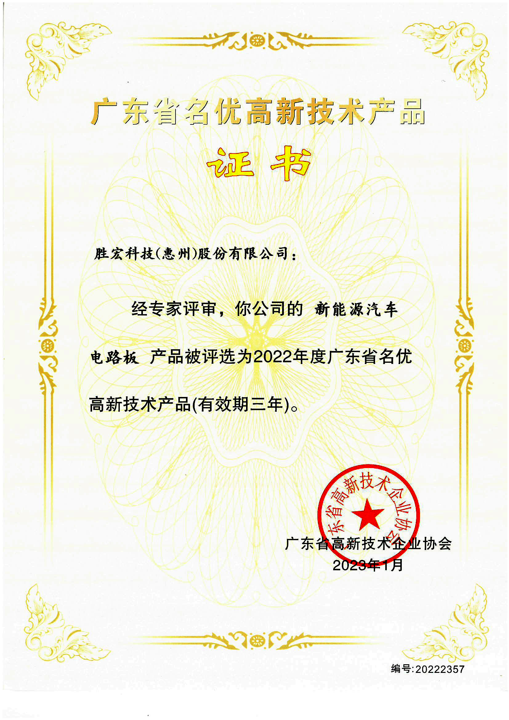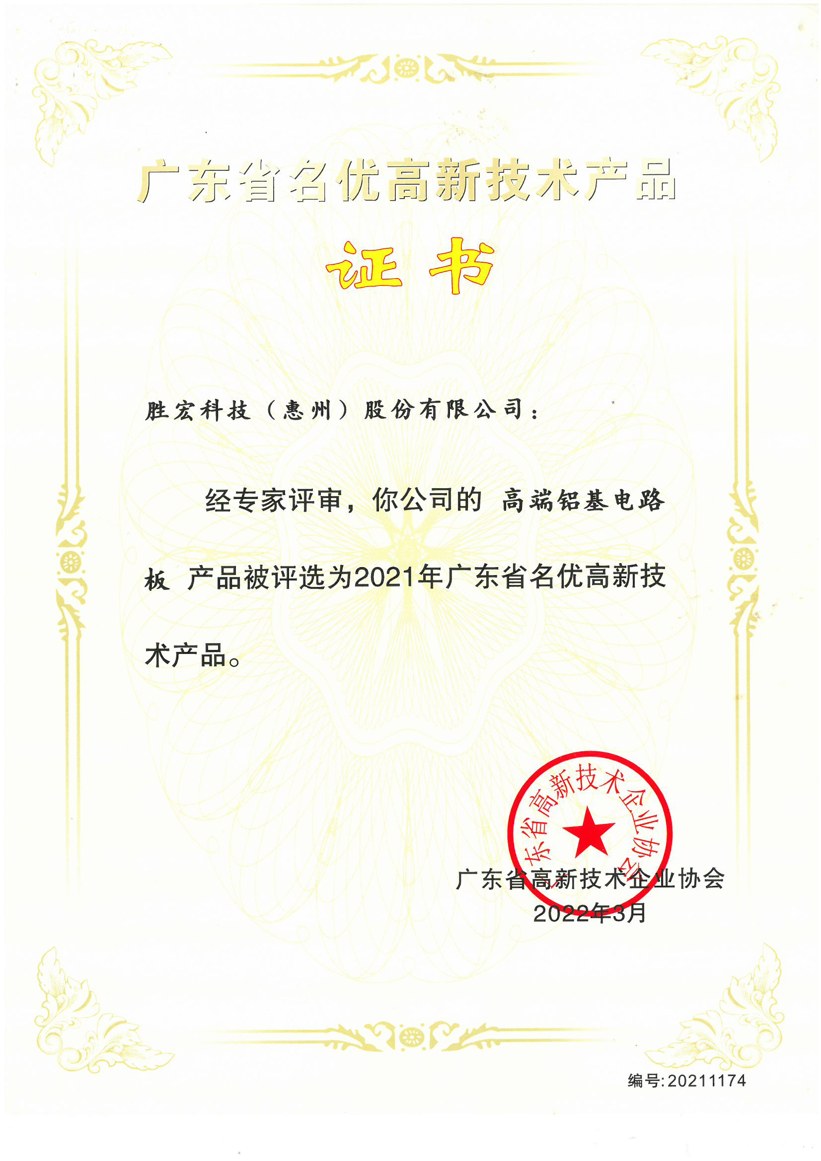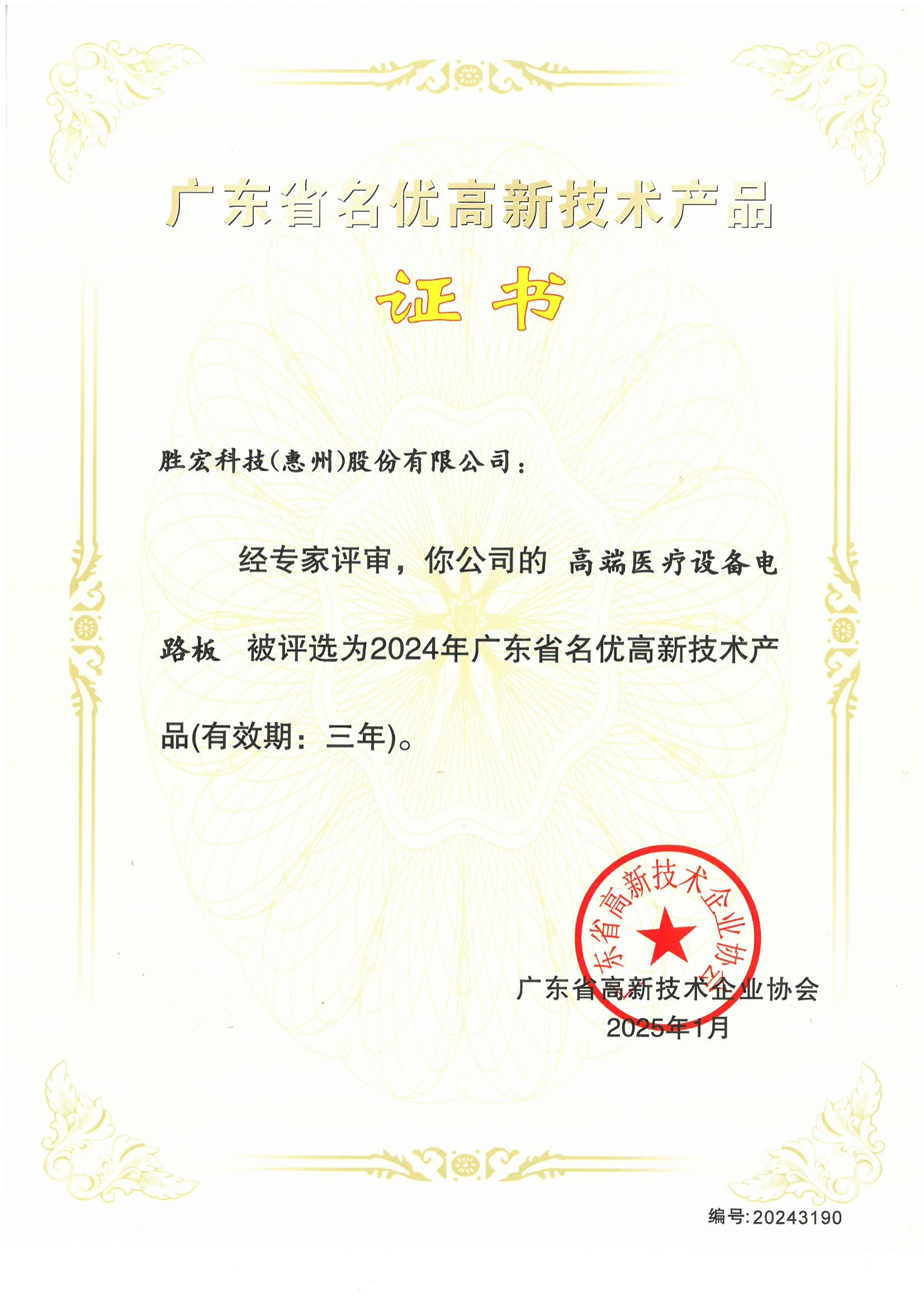 “高频HDI埋嵌铜块电路板”名优高新手艺产品证书