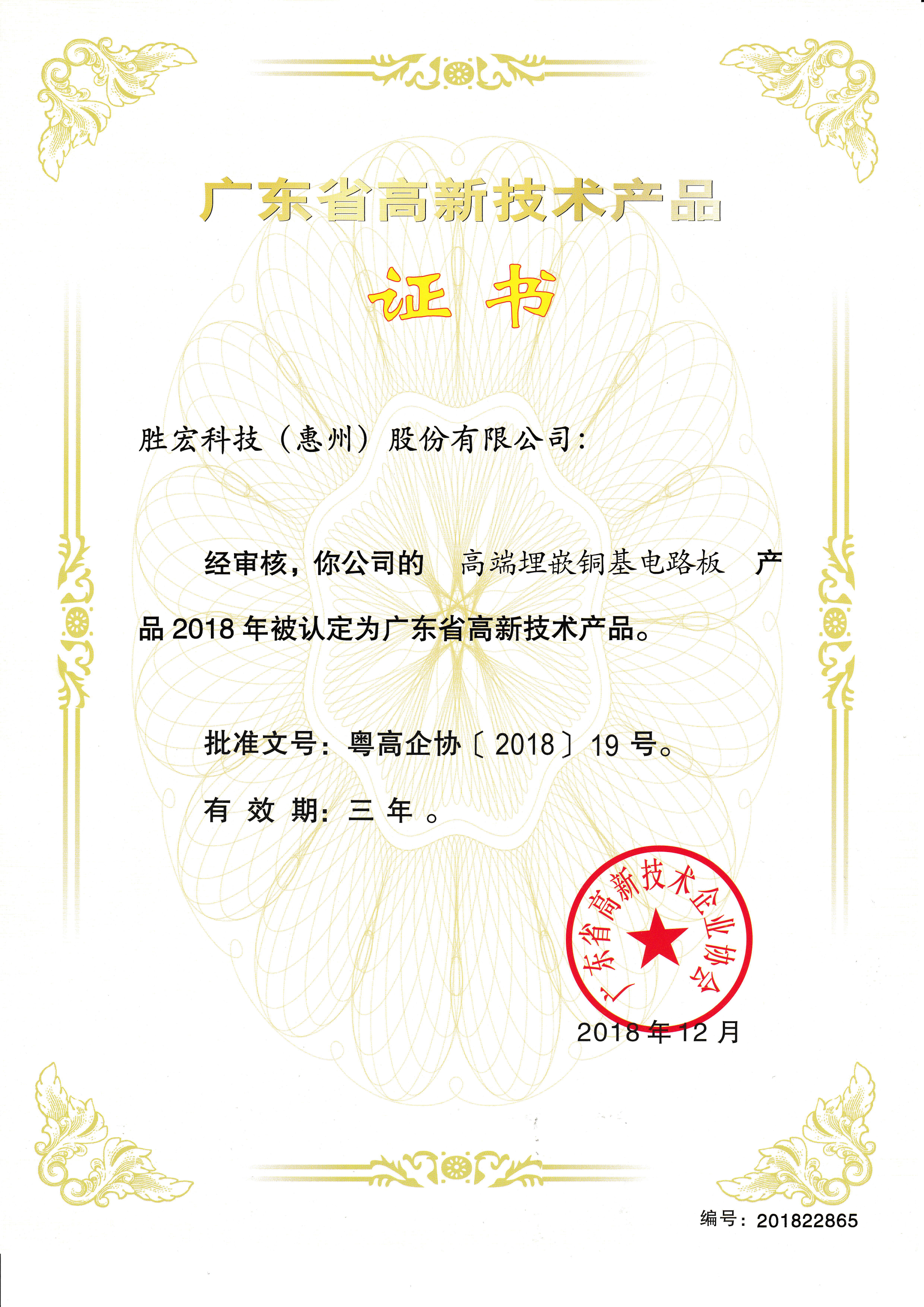 “高端埋嵌铜基电路板”高新手艺产品证书